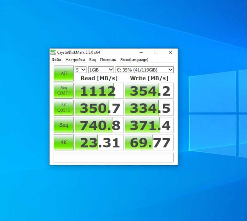 Теперь давайте по внутренностям. Конфигурация у нашего образца была, как бы это сказать, «для работы и немного для игр». То есть это связка из Core i7-9750H и GTX 1650. При этом к ним прилагаются две планки оперативки по 8 ГБ, SSD на 120 ГБ с приятной скоростью в 1,1 ГБ/с на чтение и жёсткий диск на 1 ТБ.