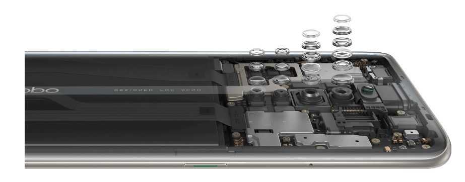 В Oppo Reno3 установлена основная камера с тремя сенсорами и одним датчиком глубины резкости, объединённые в модульный блок. Модули камеры имеют следующие характеристики:
