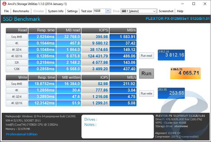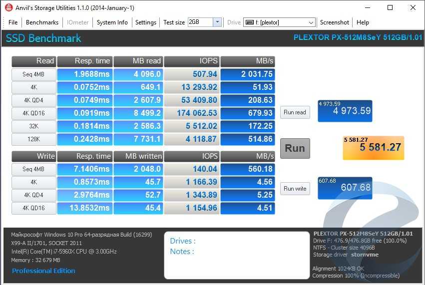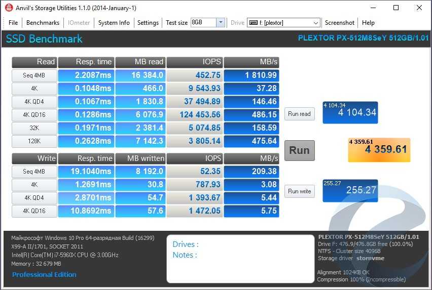 AS SSD Benchmark — небольшая программа для тестирования скорости чтения/записи SSD накопителей, а также определения времени доступа к жесткому диску.