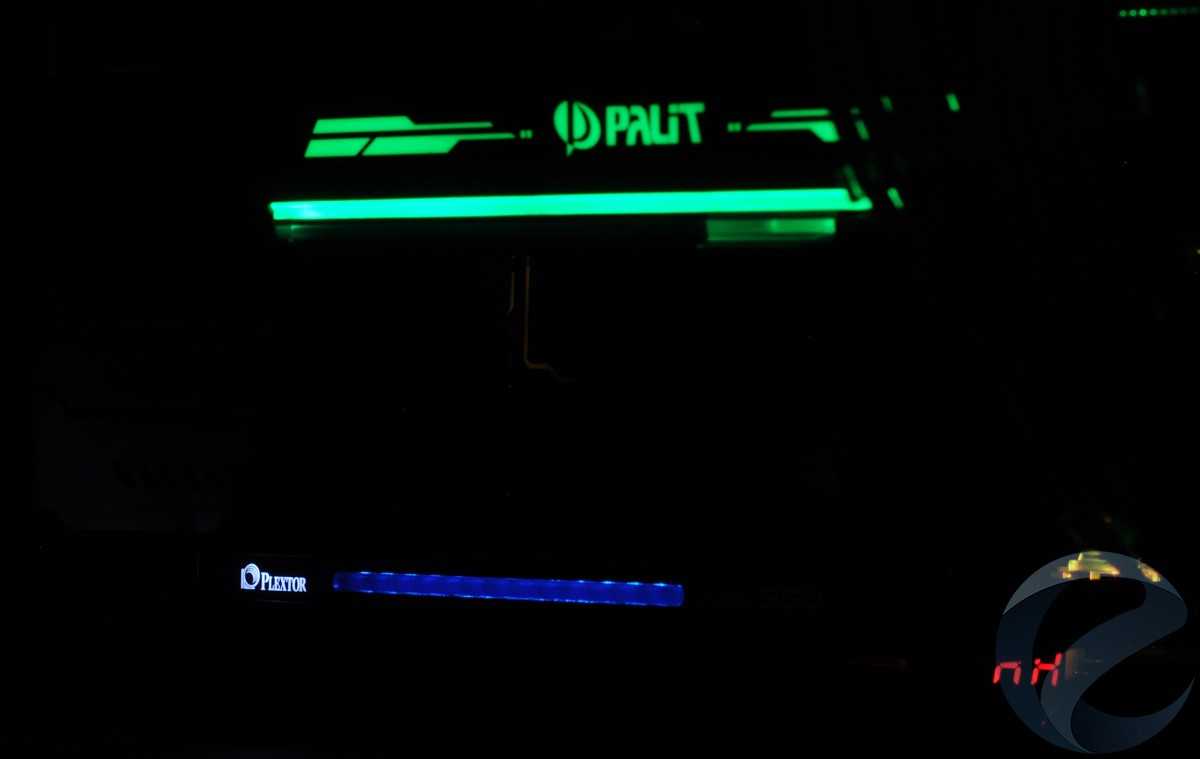 Схематичноадаптер можно разделить на две части — верхняя несет на себе 17 светодиодов, три из которых подсвечивают логотип Plextor, а оставшиеся 14создают эргономичную подсветку, которая в режиме бездействия накопителя пульсирует, а в моменты записи и чтения происходит учащение мерцания.
