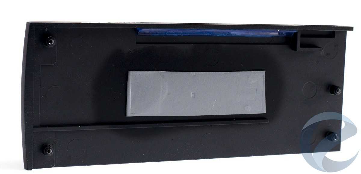 Верхняя часть имеет синюю вставку, играющую роль рассеивателя для светодиодов, а такженадписи о производителе и самом устройстве.