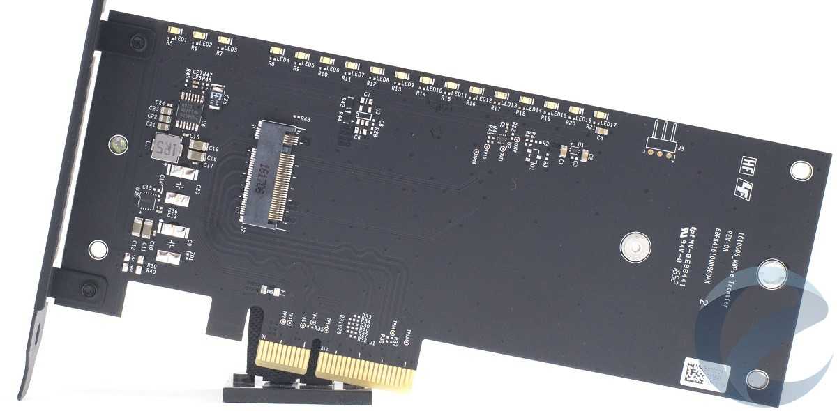 По сути, перед нами предстает обычный M.2 накопитель с адаптером M.2 -> PCIe x4. С одной стороны, это объясняется унификацией производства, с другой — для конечного пользования это несколько бесполезно, так как вставить накопитель в M.2 разъем без лишения гарантии не выйдет.