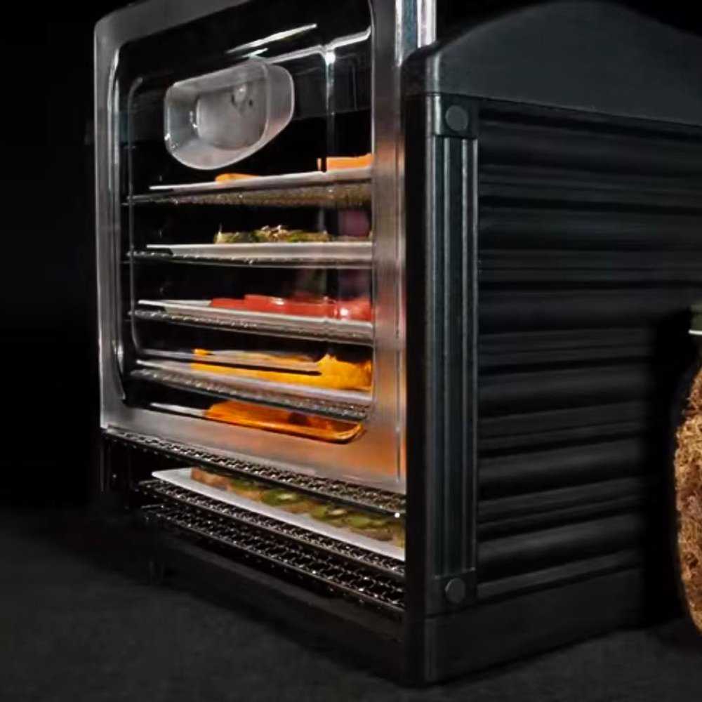 Некоторые сочные большие плоды, в особенности арбузы, персики и томаты, при сушке выделяют много влаги, которая может их же и окислять. Для этого в данной модели предусмотрена возможность приоткрывания крышки путем сдвигания ее вверх – это ускоряет удаление влажного воздуха. Производитель снабдил агрегат защитой от перегрева, перегрузок и перепадов напряжения, что обеспечивает безопасность пользователю и повышенную долговечность самому устройству.