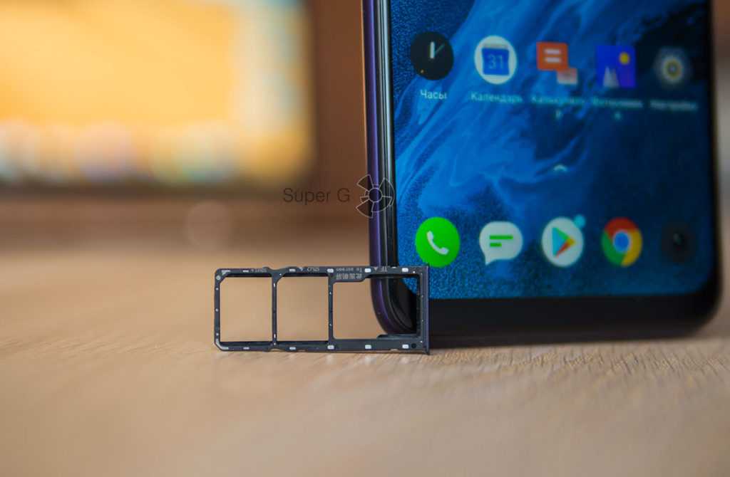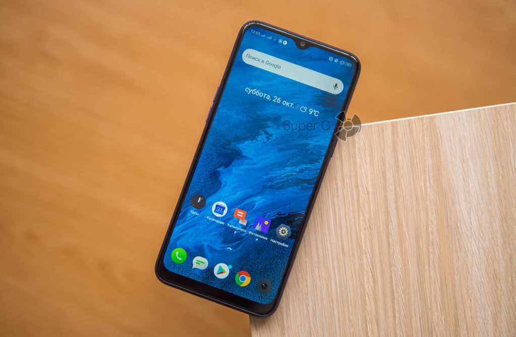 Этот девайс нужно любить глазами хотя бы за тончайшие, почти отсутствующие рамки, столь популярные в 2019 году. Удивительным покажется и расположение фронтальной камеры строго по центру (производители это поняли слишком буквально), в виде капли. Спасибо им, по крайней мере, за отпечаток пальцев на родной задней панели.
