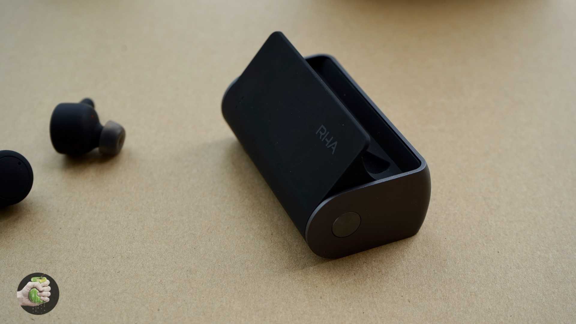 Световые индикаторы сделаны отлично, есть обозначения каналов (L и R). Кроме этого, правый наушник обозначен красной точкой. Важная составная часть — это кейс, он сделан из металла и бархатистого пластика, такого же, как у наушников. Можно было сделать цепочку индикаторов длиннее, чтобы точнее понимать, сколько ещё осталось жить аккумулятору. Но здесь стоит USB Type-C, и за это можно простить ВСЁ. Наушники располагаются в кейсе точно и ловко, нет проблем с пониманием, какой куда вставить. Кейс легко открывается, хорошо выглядит — приятная штука, вполне в стиле RHA.