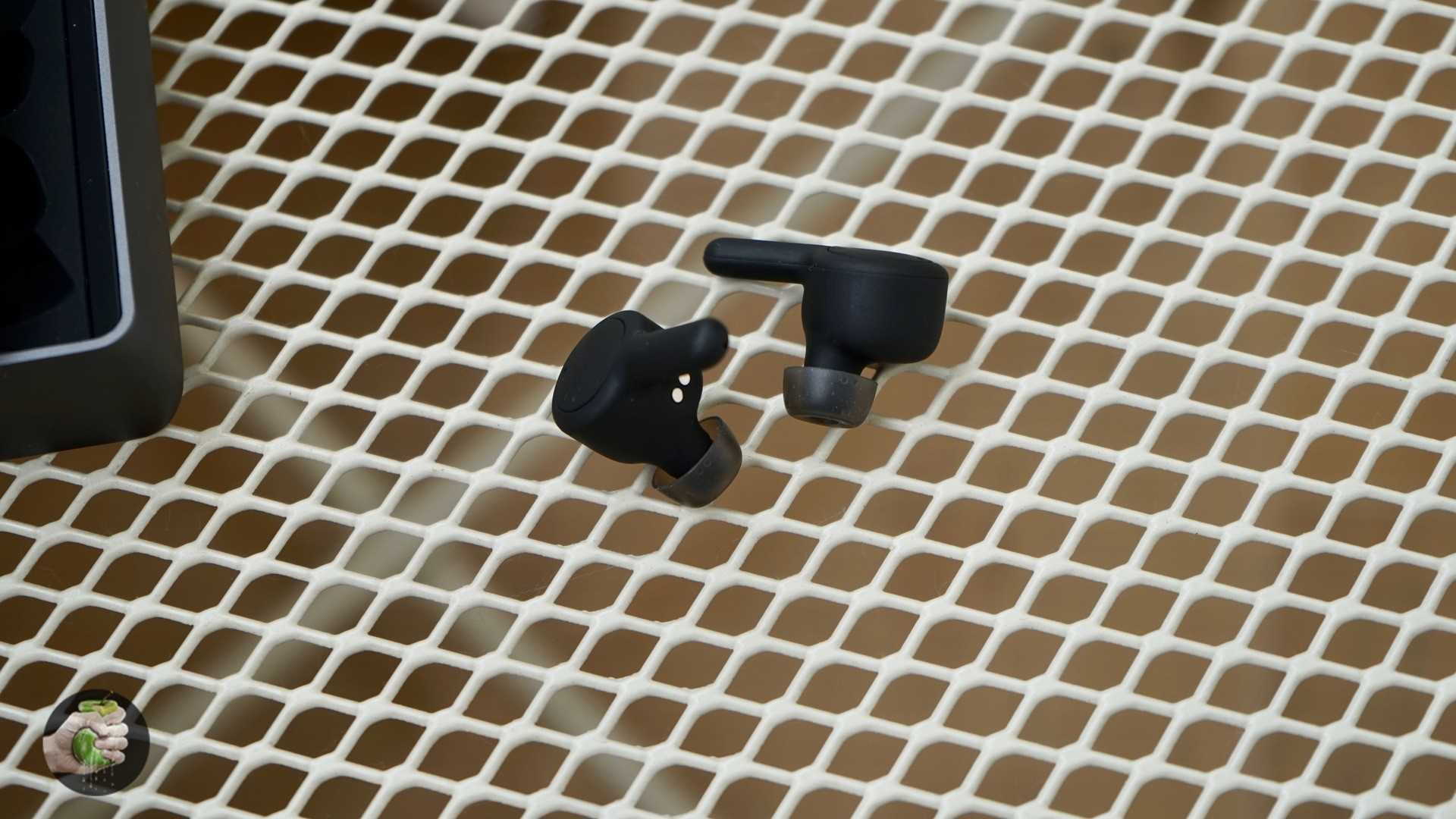 У RHA TrueConnect никаких шуток. Угольно-чёрные наушники, приятный бархатистый пластик, как и у AirPods. В характерных выступах находятся микрофоны, они есть в каждом наушнике. К слову, качество передачи голоса на хорошем уровне: гулковато, не так естественно, как у AirPods, жить можно.