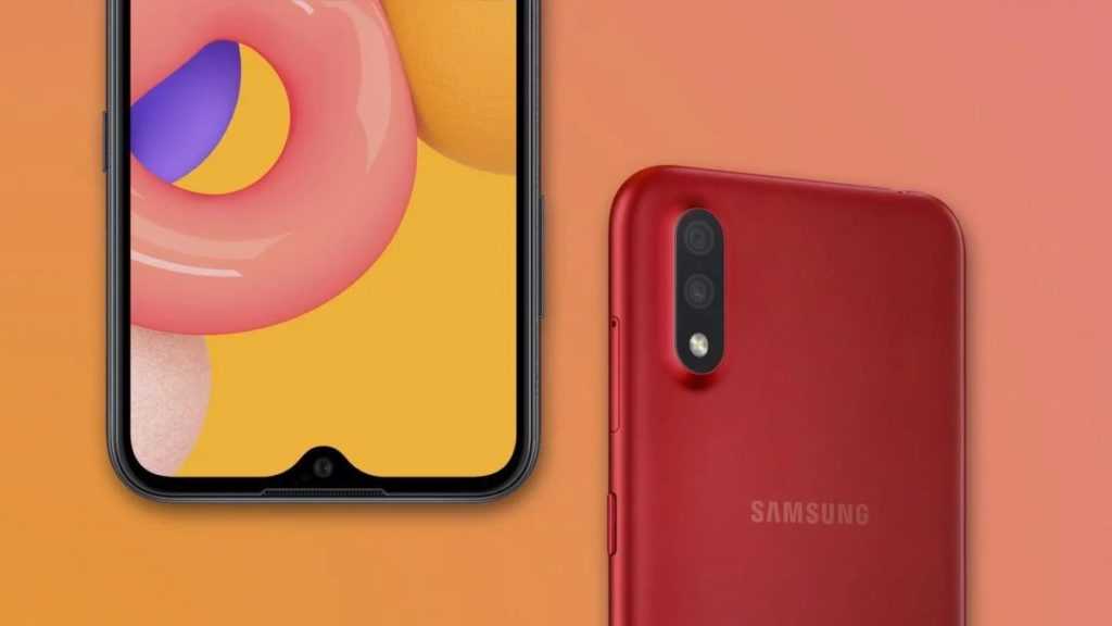 Лицевая часть застеклена, однако, из-за того, что экран на несколько миллиметров выступает вперед, потребуется защитное стекло. Фронтальную камеру оформили в виде капли. В общем, детали объединены между собой гармонично. Нет чрезмерности в дизайне, а издалека смартфон Galaxy M01 можно с легкостью перепутать с гаджетом из средней ценовой категории.