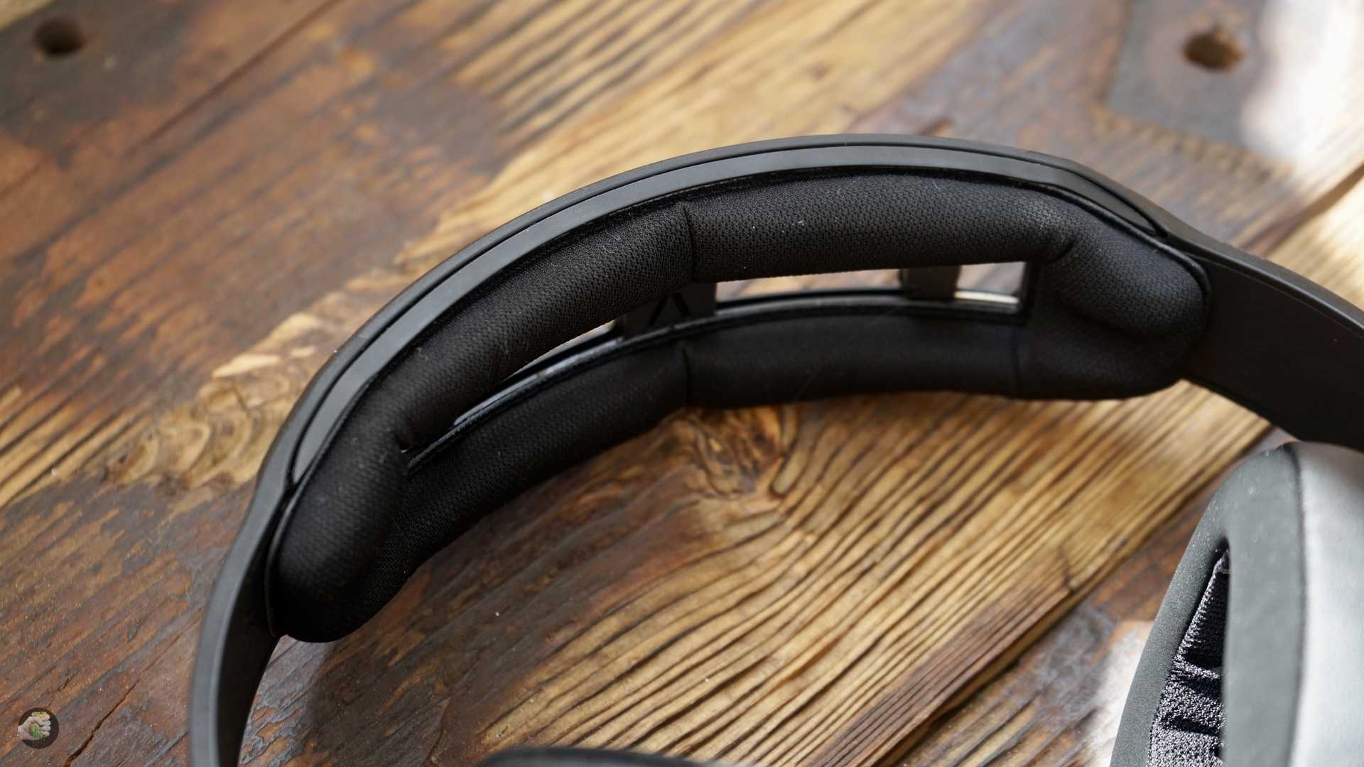 Внутренняя отделка оголовья из патентованной ткани отлично вентилируется, не позволяя голове потеть. С амбушюрами поступили интереснее: контактная часть из искусственной замши, боковая часть — из кожзама.