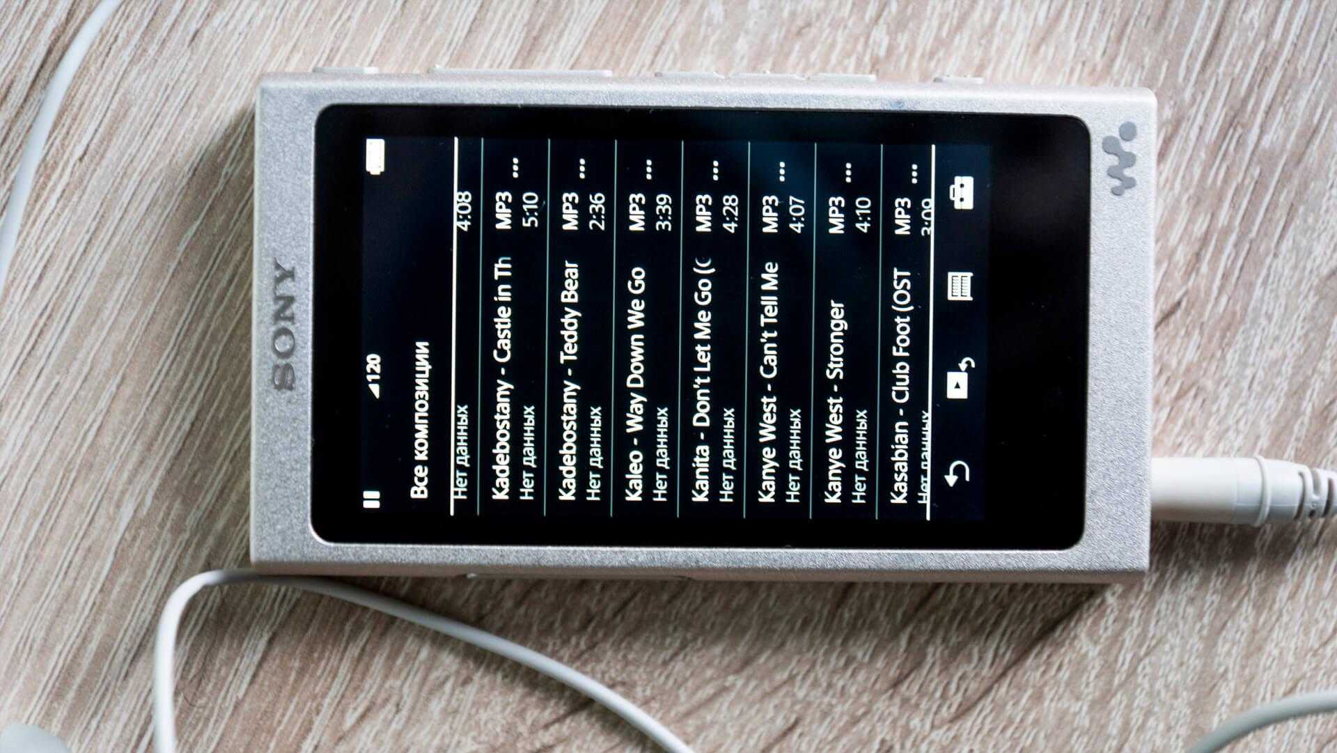 Пара слов об экране: он тут небольшой (3,6 дюйма), но с неплохим для такой диагонали разрешением (1280 × 720 точек) — картинка четкая, без пикселизации, яркость достаточная, чтобы плеером можно было спокойно пользоваться и в солнечный день на улице. Но из-за небольшой диагонали и не лучшим образом рассчитанного размера шрифтов в приложении плеера названия многих треков просто не помещаются на экране.