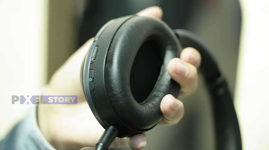 Управление классическое для больших наушников Sony, на чашке находится сенсорная панель, движениями вверх-вниз регулируем звук, влево-вправо переключаем треки, нажатие в центр активирует Play/Pause и другие функции