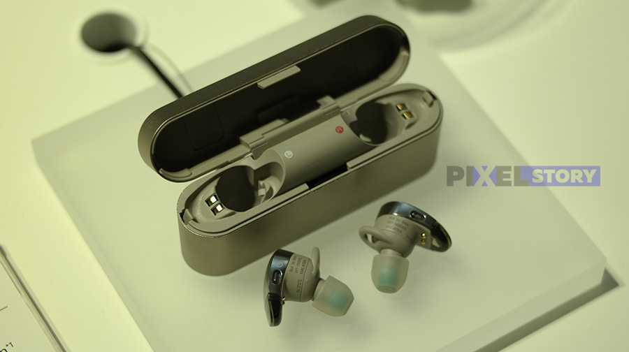 Зарядка Sony WF-1000X происходит в специальном футляре, который имеет собственный аккумулятор. Зарядив его, вы можете таскать его с собой, периодически засовывая туда свои WF-1000X для подзарядки.