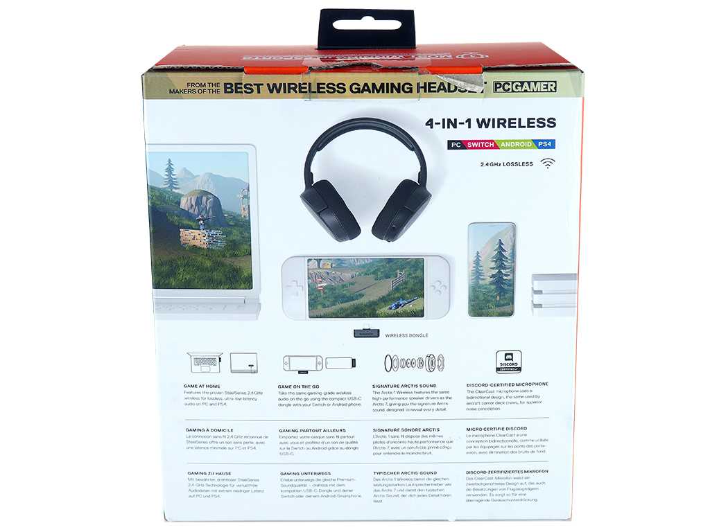 Стоит обратить внимание на разноцветную полосу в правом нижнем углу – PC, SWITCH, PS4 и ANDROID, что подчеркивает внушительный охват в области современных игровых устройств. Как вы догадываетесь, Arctis 1 Wireless поддерживает и прекрасно себя чувствует на всех заявленных платформах.