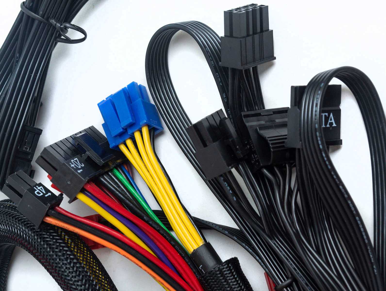 Модульные кабели выполнены в виде плоских черных шлейфов, провода (кроме PCI-E) калибром 18AWG: