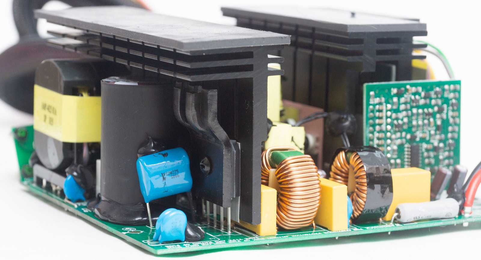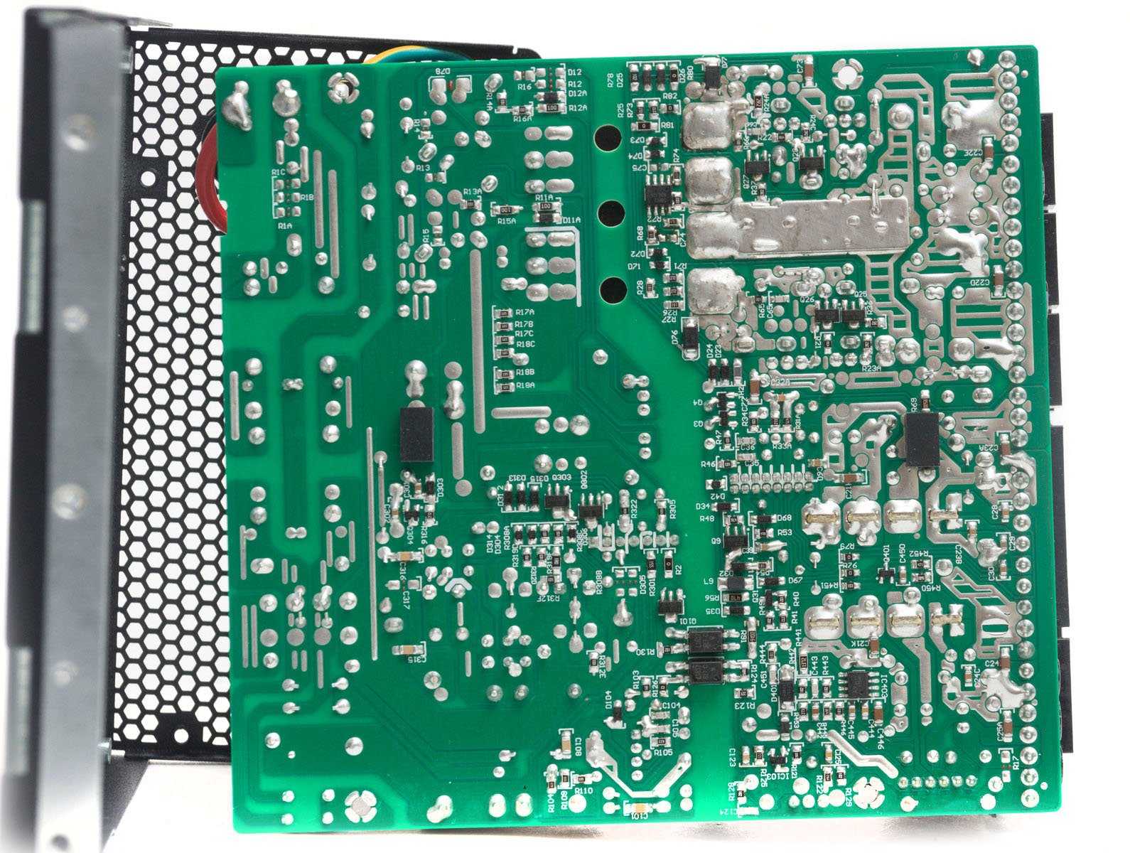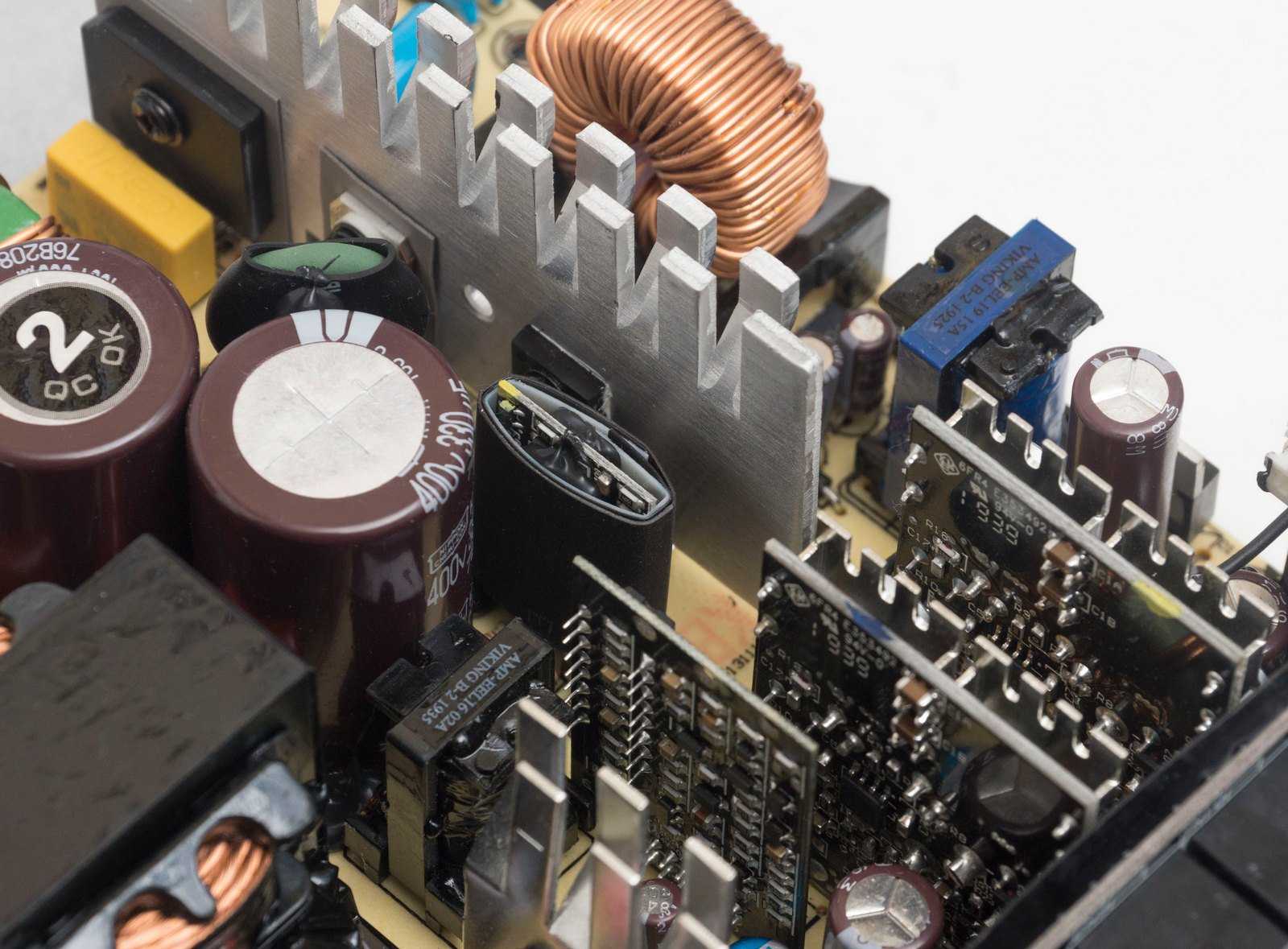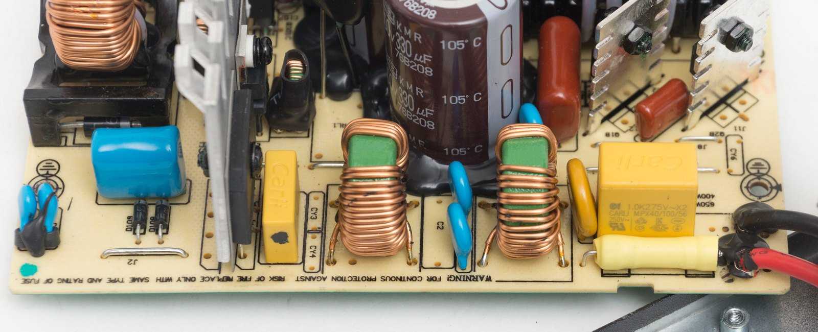 Фильтрация помех на выходах осуществляется за счет электролитических конденсаторов японского производства Chemi-Con, рассчитанных на температуру до 105 °C, и полимерных Teapo.