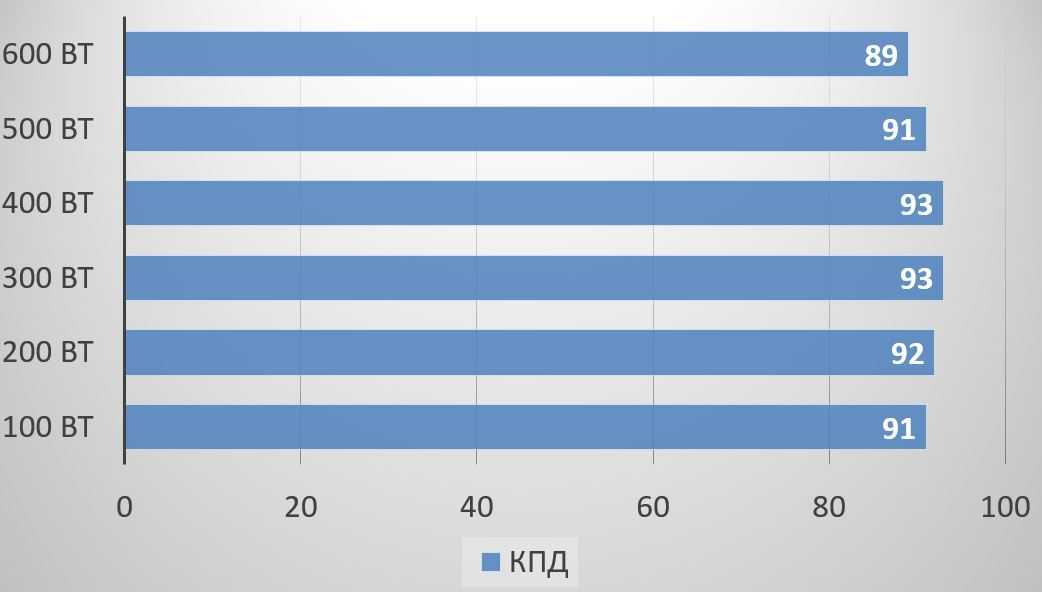 | Нагрузка | 10 % | 20 % | 30 % | 40 % | 50 % | 60 % | 80 % | 100 % |