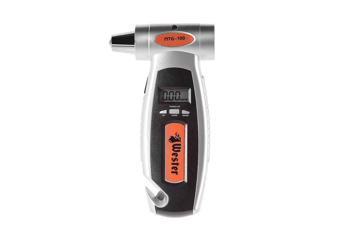 Этот манометр цифрового типа стоит в районе 500 рублей. Модель способна измерить давление в пределах 0,2-6,9 бар. Масса небольшая — всего 130 г. Для экстренных случаев манометр имеет небольшой резак для ремней безопасности, а еще оснащен диодным фонариком, позволяющим подсвечивать пространство в темноте.