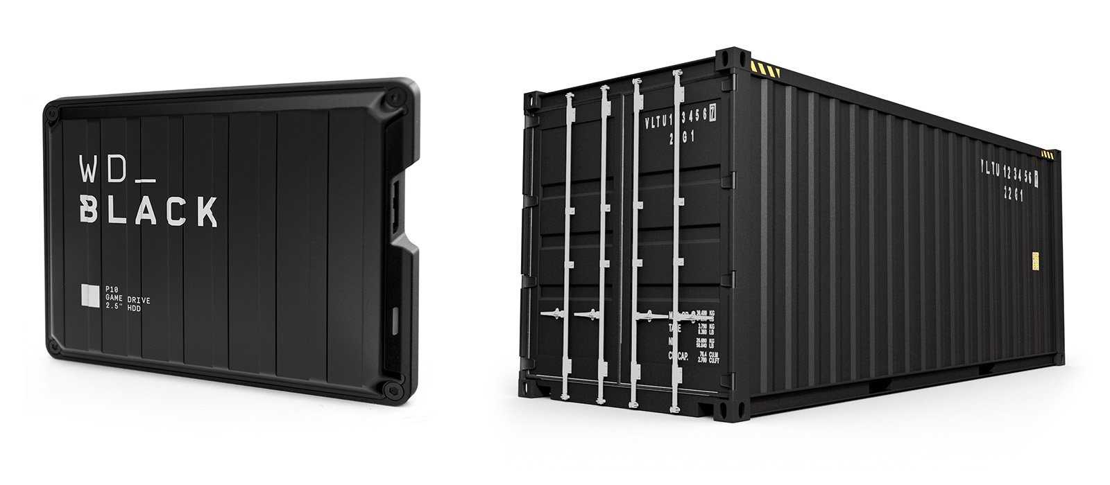 WD_Black P10 Game Drive имеет довольно необычную для портативных накопителей форму. Нет, конечно же, это все тот же прямоугольник, но, вопреки привычным «обмылкам», устройство имеет острые, рубленые грани. Это выглядит строго и лаконично, с ярко выраженными чертами индустриализма.