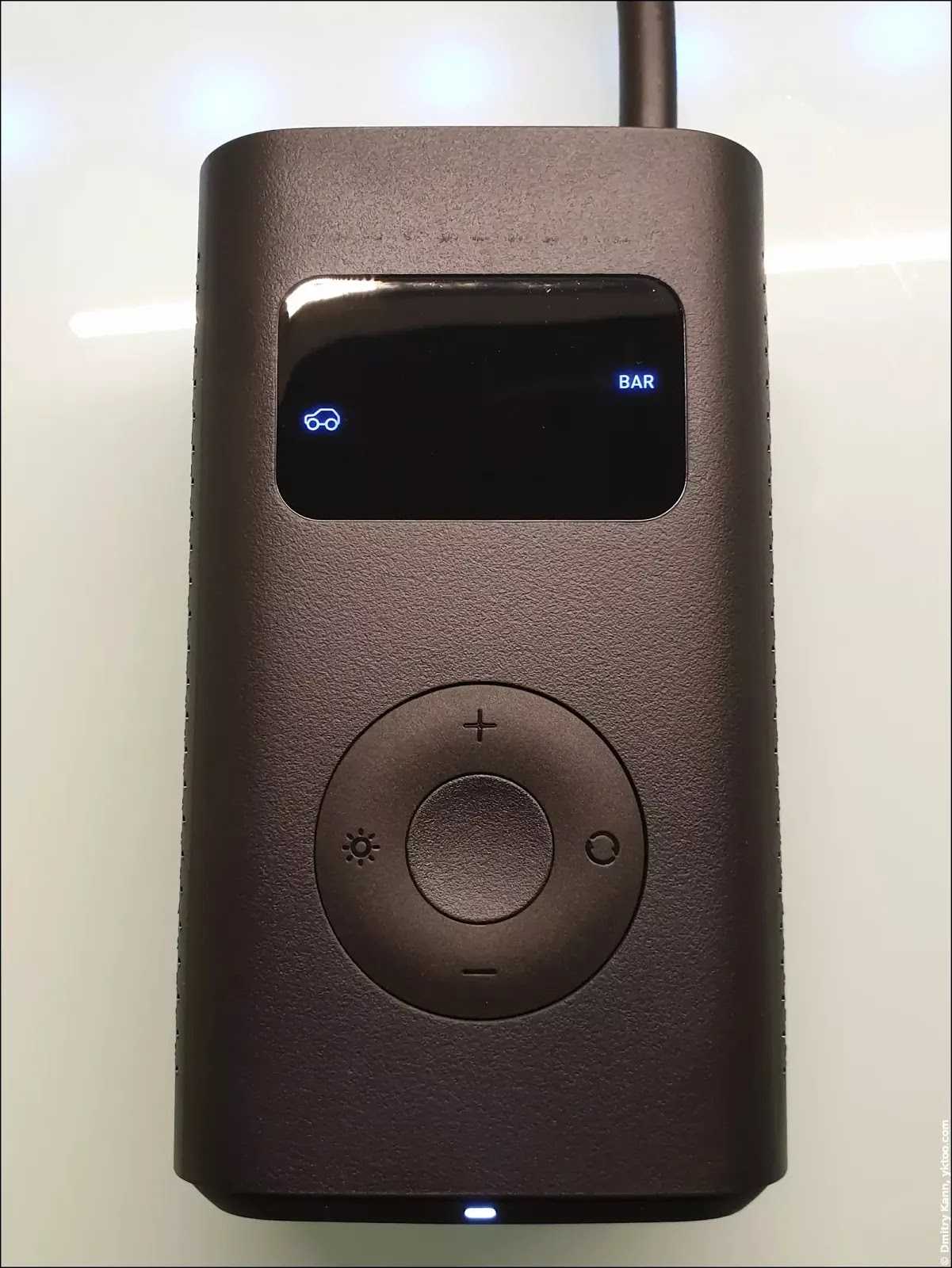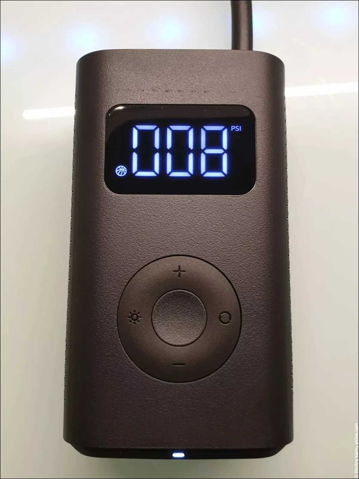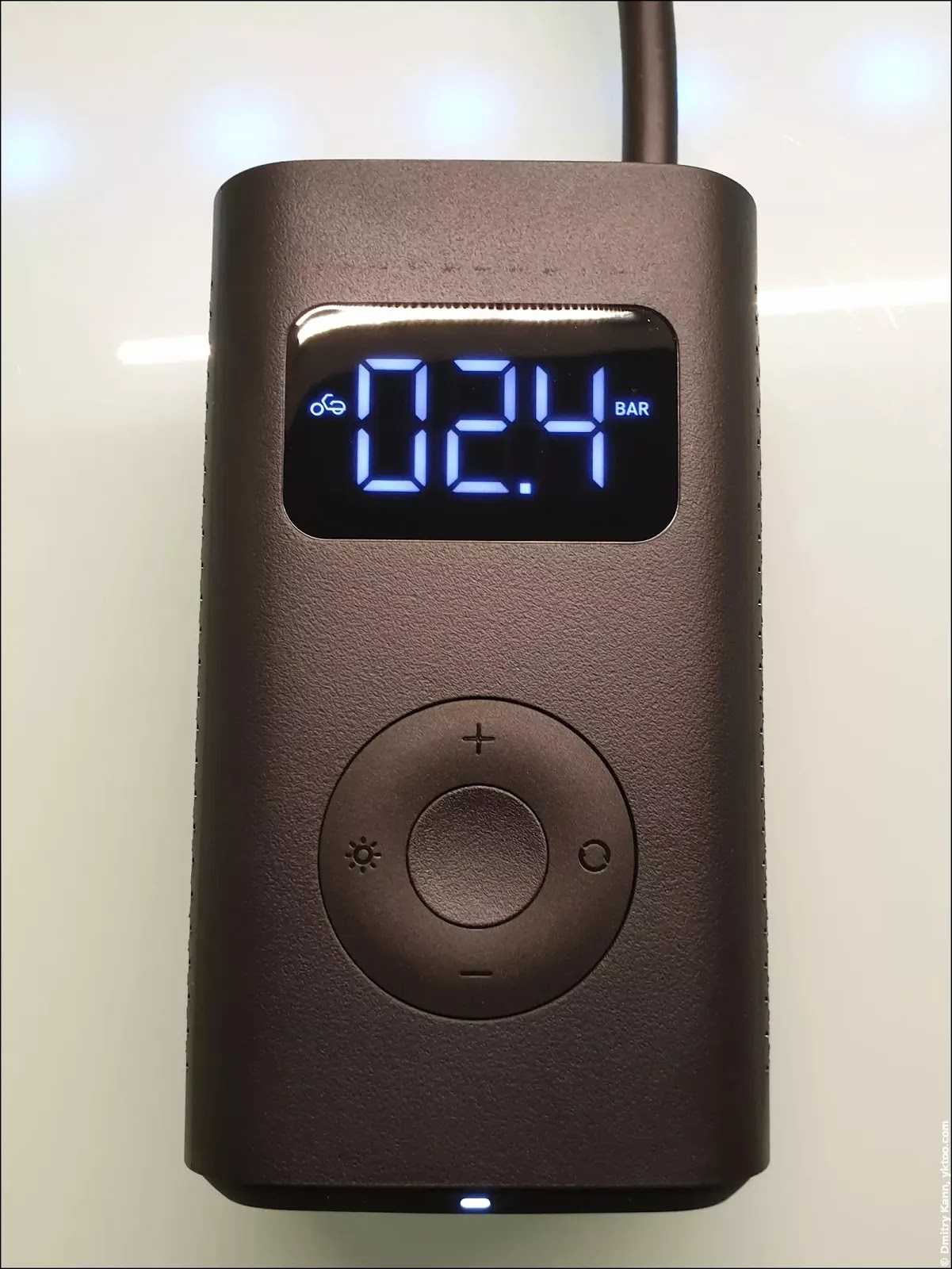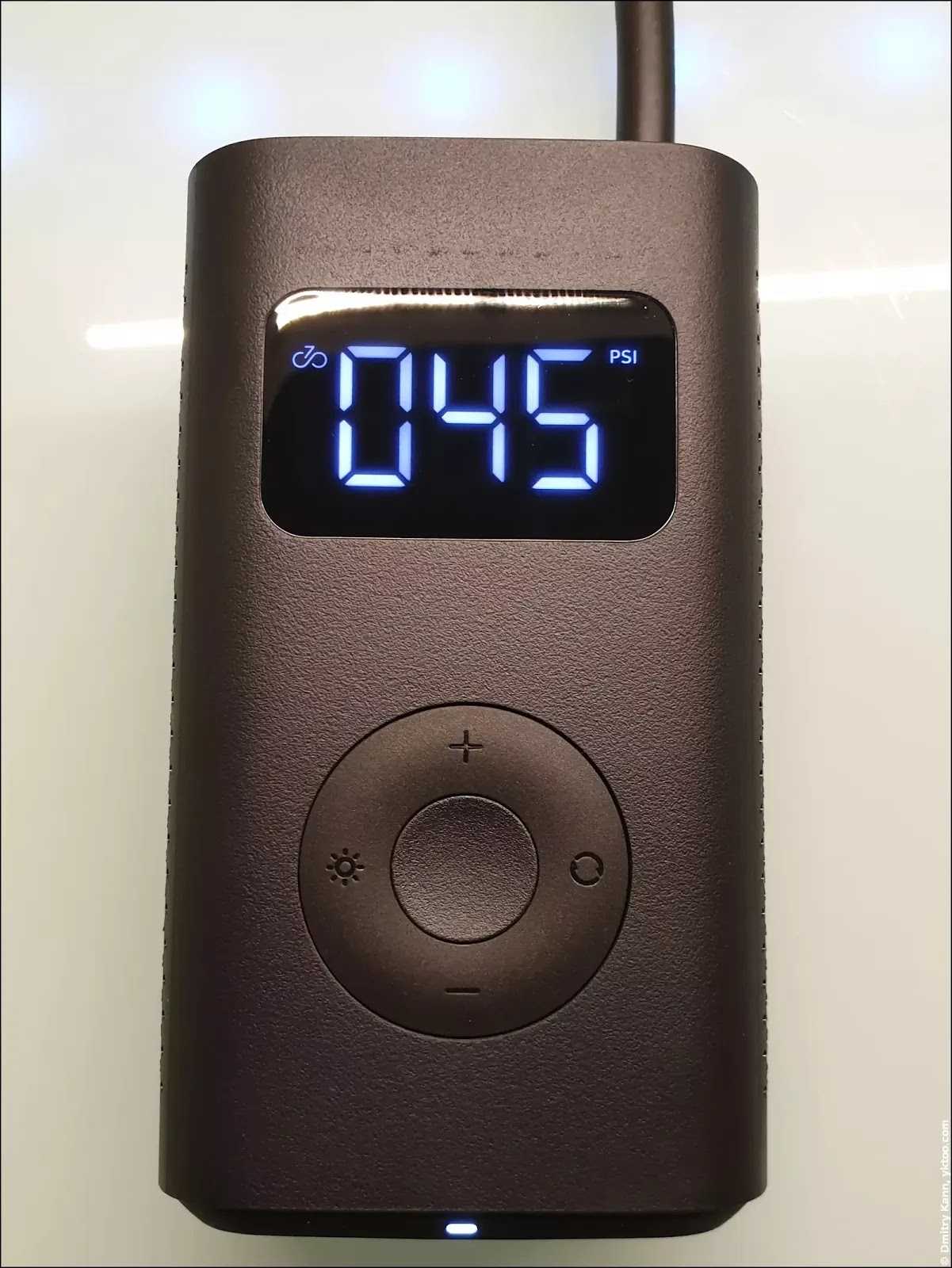 Для запуска нужно нажать на кнопку в центре круга — только не подскочите от неожиданности, потому что тарахтит прибор довольно громко. По достижении заданного давления он остановится сам, его в любой момент также можно остановить вручную нажатием той же кнопки.