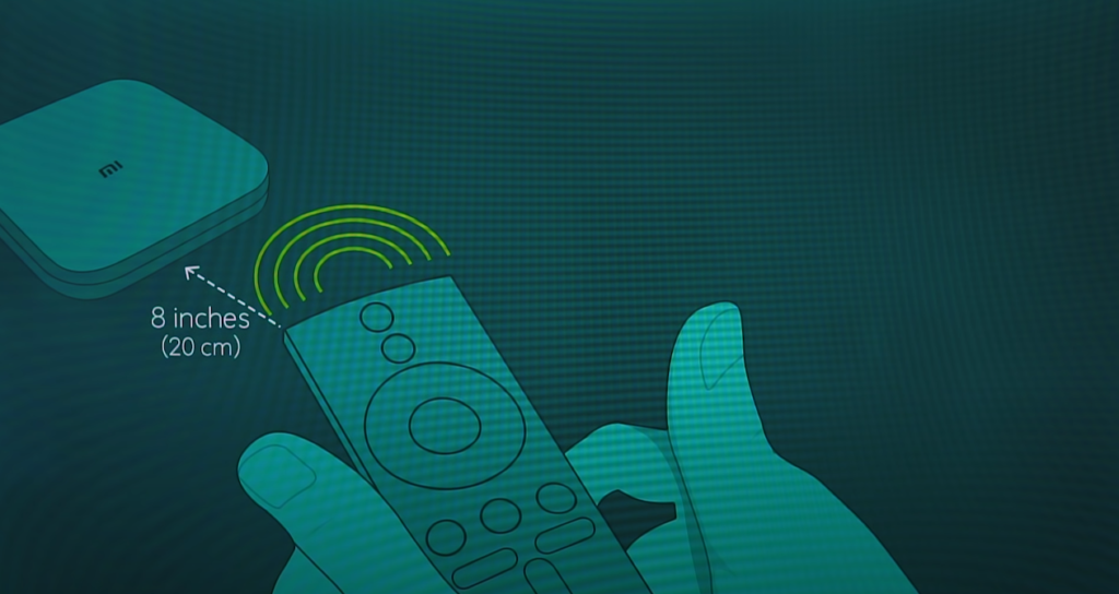 2. Держите пульт на расстоянии в 20 сантиметров от приставки, следуя рекомендациям Xiaomi.
