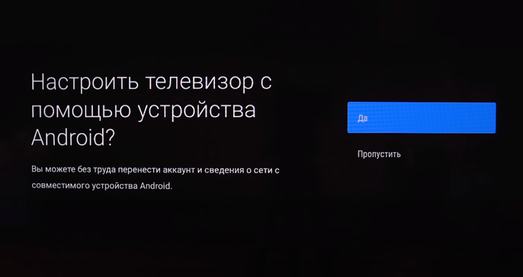 4. Mi Box предложит настроить телевизор с помощью устройства Android. Есть два варианта: