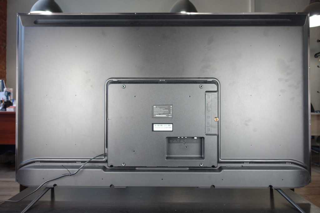 Согласно сведениям на наклейке на задней панели корпуса, телевизор собран в Калининграде. Очевидных недочетов сборки мы не обнаружили, единственный момент — пластиковая задняя панель при надавливании прогибается.