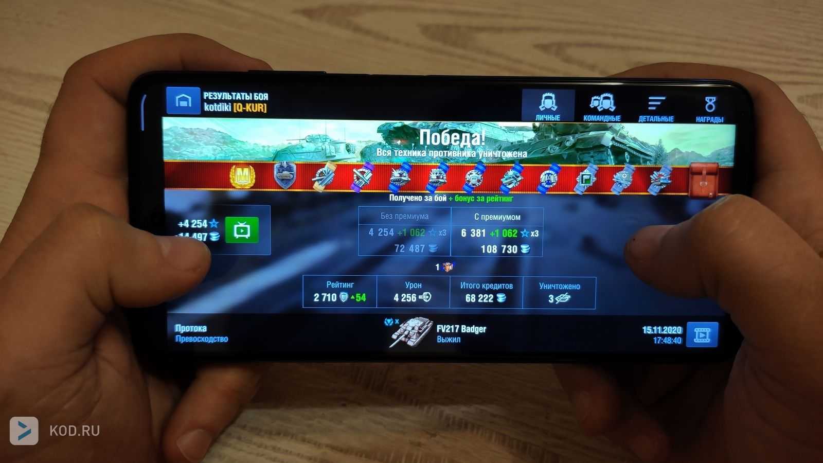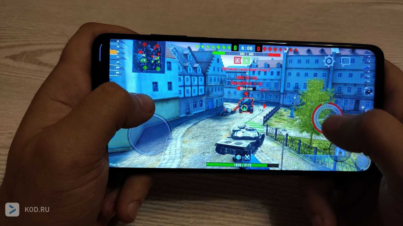 Сравнивая со своим Xiaomi Mi9T Pro, в котором более производительный процессор, но менее отзывчивый сенсор, чем в Poco X3 NFC, играть в World of Tanks Blitz на последнем — одно удовольствие, пусть и на низких настройках. В этом режиме значение FPS не падало ниже 50. Но если установить максимальный уровень качества графики, то во время массовых стычек кадровая частота может опуститься до 30, а то и до 15 FPS, что не очень комфортно.
