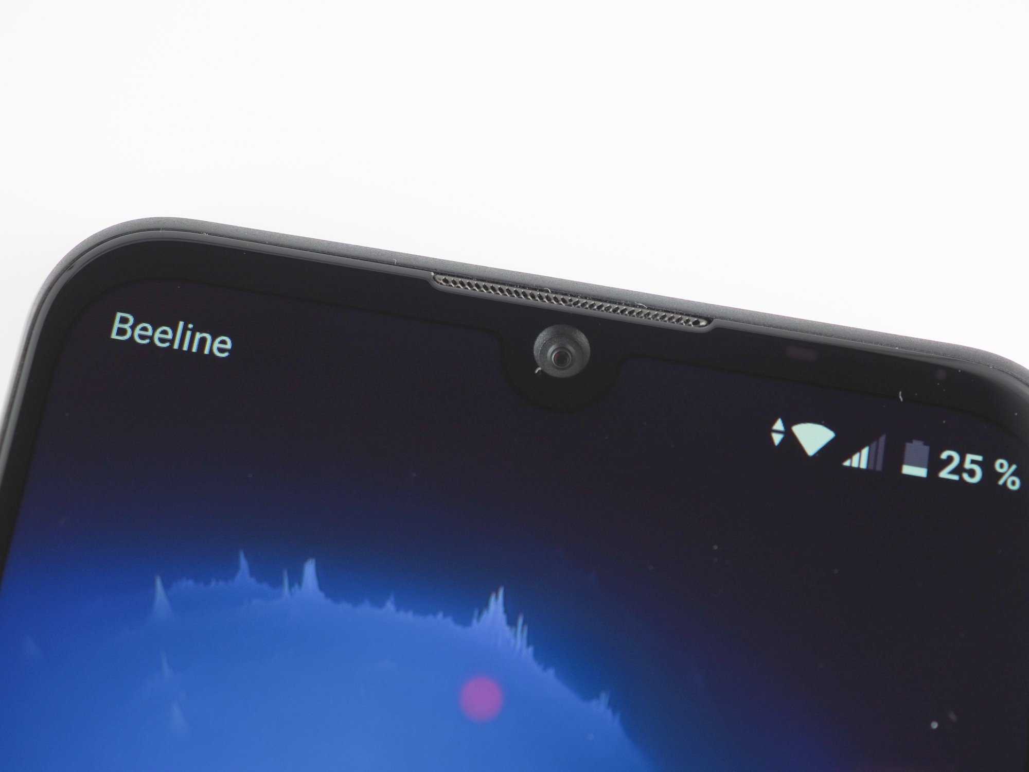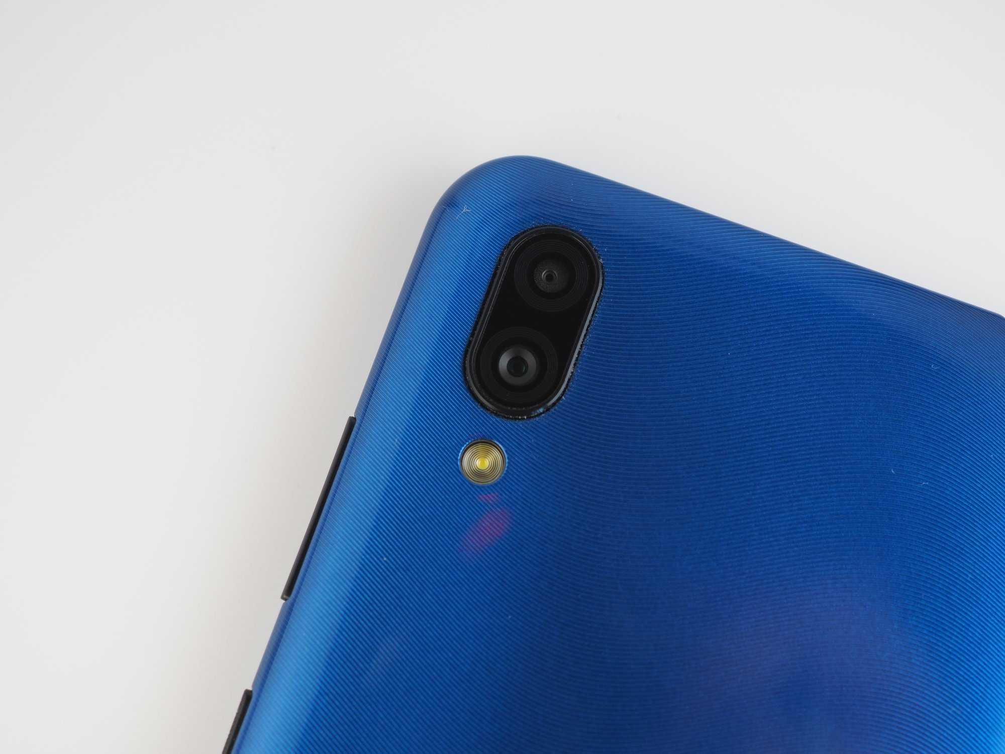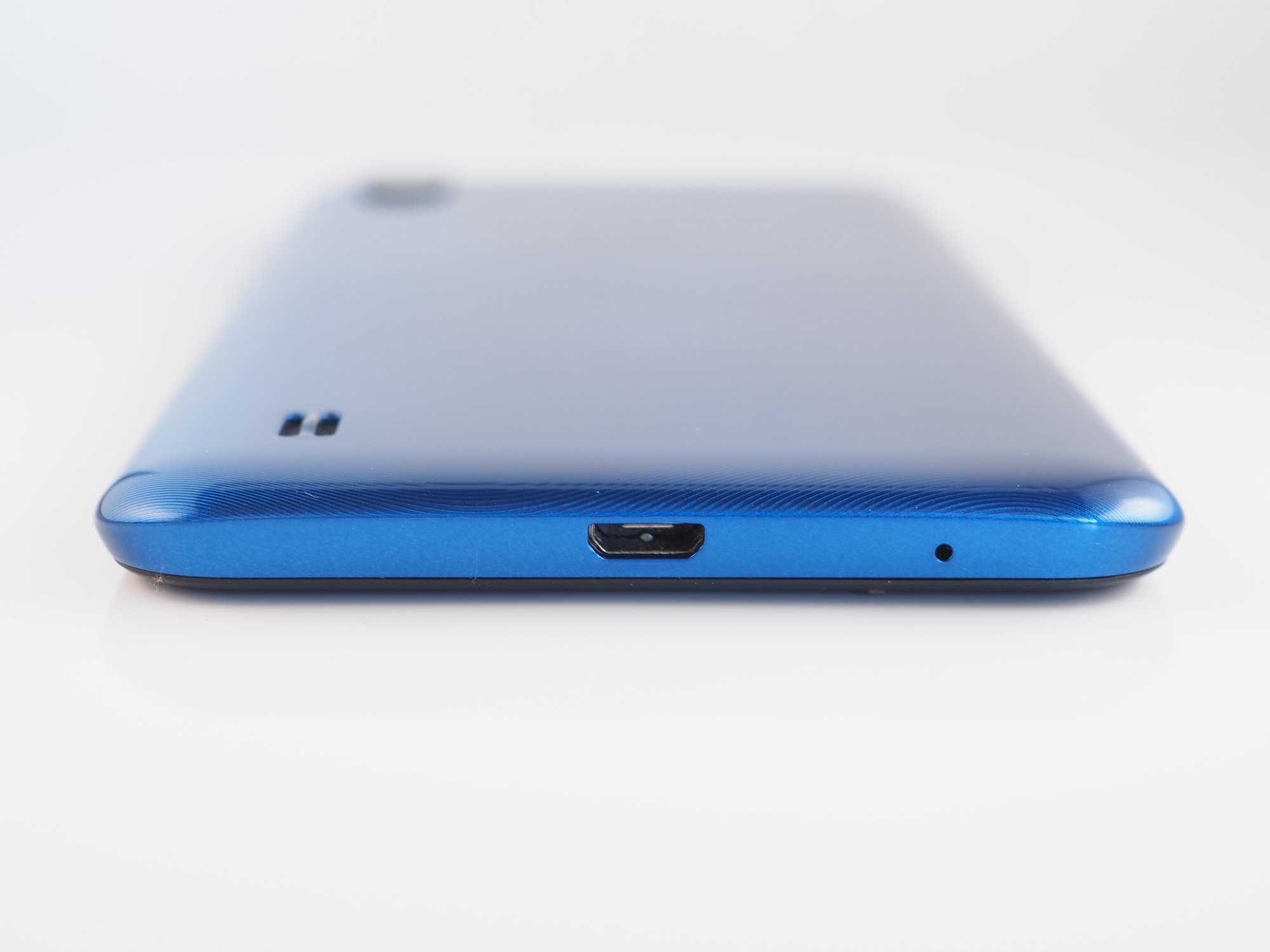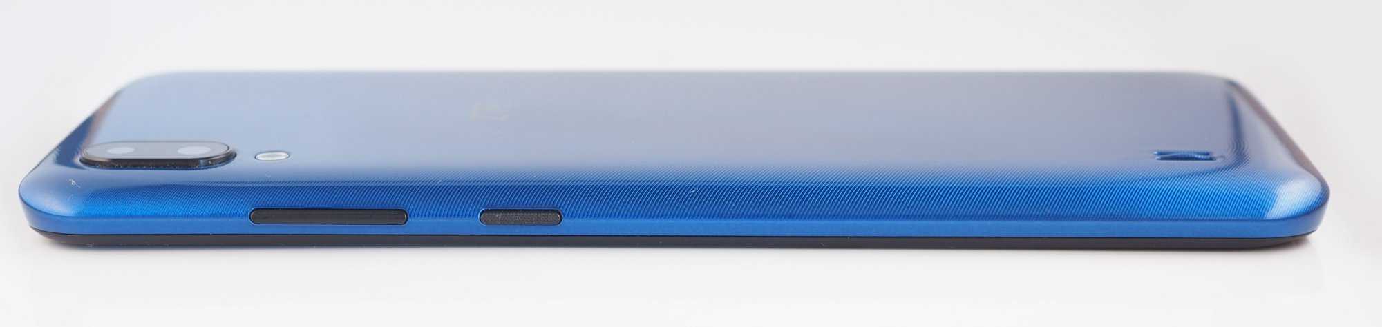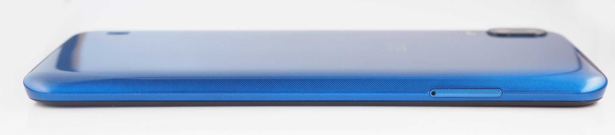 Задняя панель выполнена из глянцевого пластика синего цвета с текстурированным рисунком. Также ZTE Blade A5 2020 доступен в черном и зеленом цвете. На задней панели расположился блок из сдвоенной камеры со вспышкой и прорезь основного динамика. Задняя грань скругленная, за счет чего основной динамик хорошо слышно, даже если смартфон лежит на задней панели. ZTE Blade A5 2020 достаточно компактный смартфон, и он отлично лежит в ладони — не выскальзывает и не вызывает трудностей в управлении одной рукой. Но стоит заметить, что пластик задней панели достаточно маркий, и, если на синем цвете отпечатки пальцев не бросаются в глаза, то черный цвет не такой практичный, и на нем любой мусор и следы рук будут отчетливо выражены.