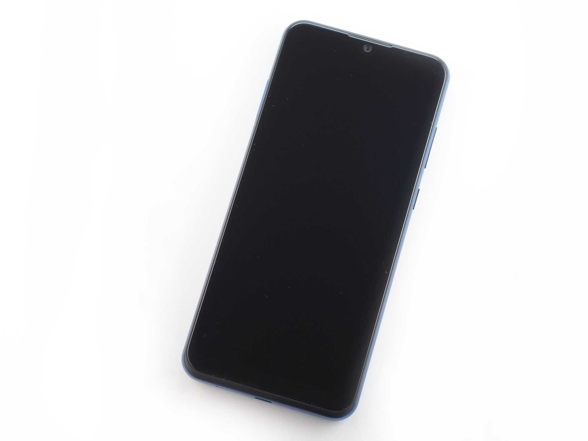 От современного смартфона ожидаешь безрамочный экран с небольшим вырезом и стеклянный корпус. Но у нас бюджетное устройство, а значит, никакого стеклянного или металлического корпуса — только пластик. А вот с экраном тут все именно так, как это принято в 2020 году — большой дисплей с каплевидным вырезом под камеру и экранные кнопки управления. Дисплей c диагональю 6.09″ и разрешением 1560×720 точек занимает практически всю переднюю панель смартфона ZTE Blade A5 2020. В каплевидном вырезе расположена фронтальная камера, а над ней — разговорный динамик. Светодиодный индикатор уведомлений расположен в правом верхнем углу чуть выше дисплея. Боковые рамки компактные и практически не заметные, а вот нижний отступ уже бросается в глаза. Но исключительно из-за чуть больших размеров, чем верхний отступ. В целом дизайн полностью соответствует актуальной стилистике.