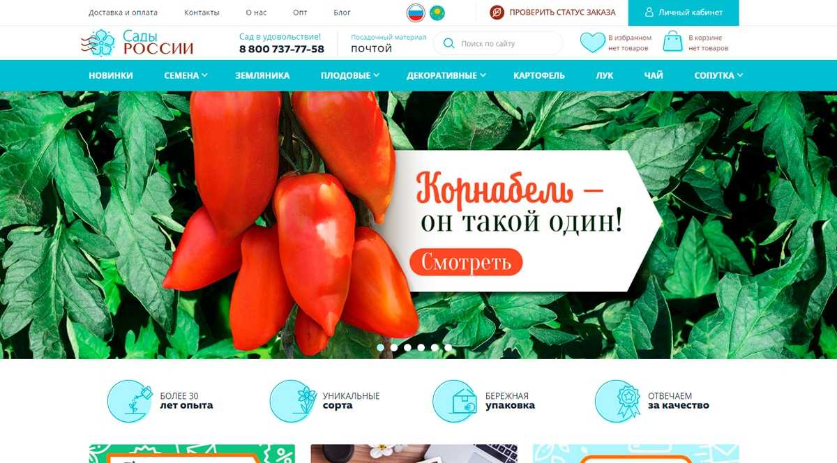 Ресурс смело можно назвать одним из самых информативных. В разделе «Садовое сообщество» можно найти полезные советы, изучить лунный календарь, поучаствовать в конкурсах и даже оформить подписку на бесплатное издание с продукцией магазина. В каталоге представлены более 2000 наименований растений, позволяющих превратить свой дачный участок в цветущий сад и плодоносящий огород. Компания заботится о своих клиентах – для пересылки товаров используется инновационная технология с применением гидрогеля, призванная обезопасить саженцы при транспортировке.