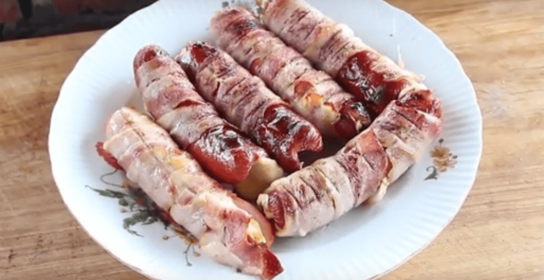 - Сосиски с сыром в беконе.
