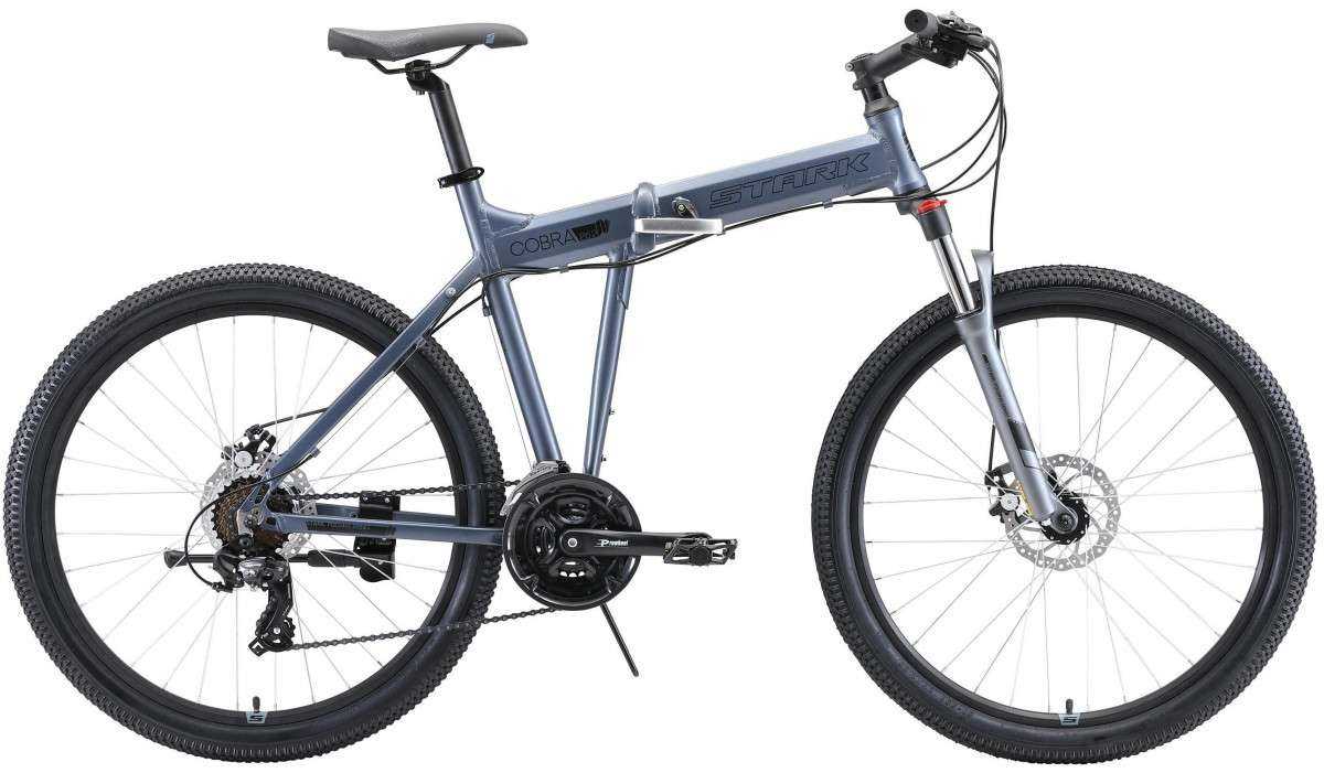 Складной велосипед STARK Cobra 26.2 D имеет оборудование начального класса Shimano и может легко вместиться в маленький лифт, багажник авто. Для этой модели несложно найти место в малогабаритной квартире. При этом велосипед отлично себя чувствует на любых дорогах, даже со сложным рельефом. На него можно установить детское кресло. Алюминиевая рама STARK Cobra 26.2 D легкая и прочная